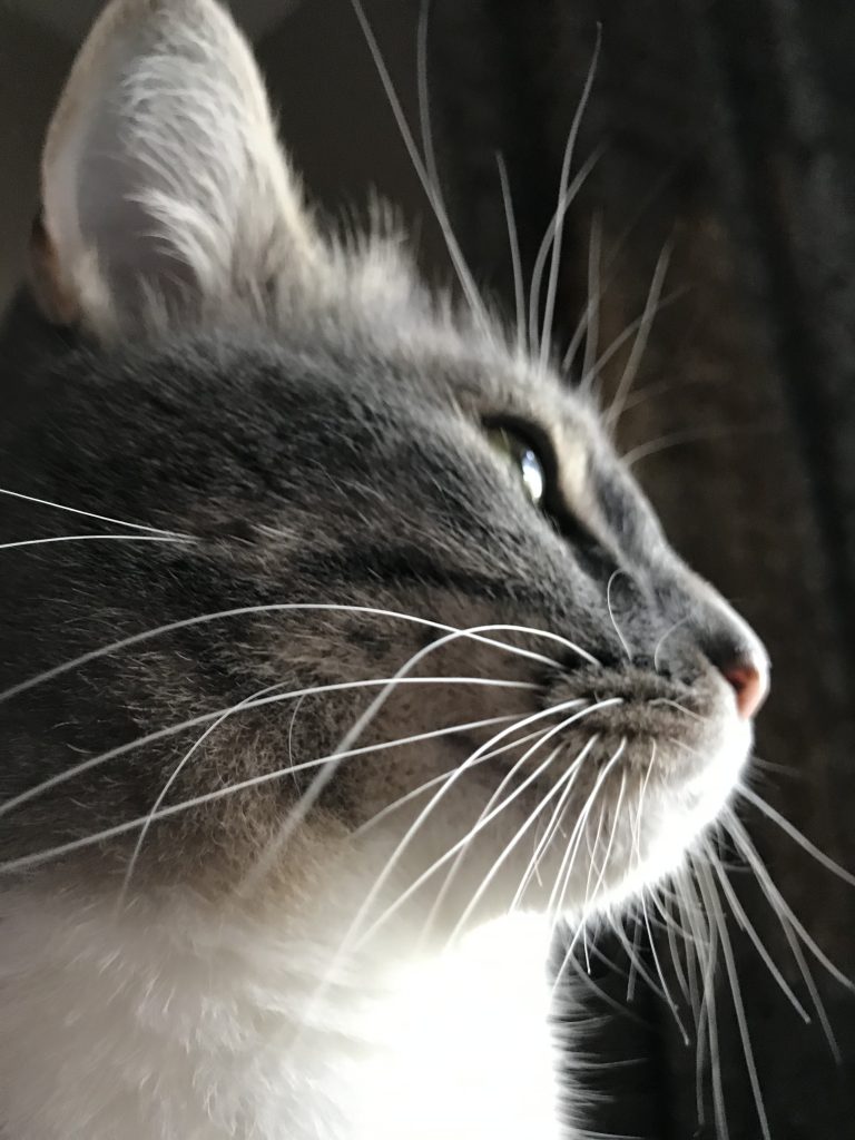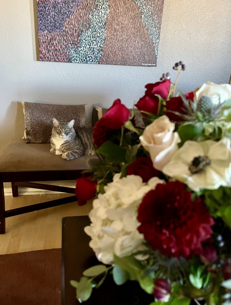 The taupe tabby was skinny but turned down the canned tuna I offered. Mau was affectionate and talkative, meowing at us like she expected a response. We don’t have many outdoor kitties in our area due to coyotes, owls, and other predators. She didn’t have a collar or chip, but we assumed such a friendly kitty must have a home, so we sent her on her way.
